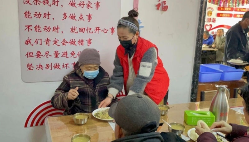 活動(dòng)過(guò)程中,志愿者們首先對(duì)餐廳的衛(wèi)生進(jìn)行了清掃,大家自發(fā)分組,有的拿起掃帚清掃地面,有的揮動(dòng)抹布擦拭門(mén)窗和扶手,每個(gè)角落都不放過(guò),全力以赴改善餐廳的環(huán)境衛(wèi)生。在中午開(kāi)飯時(shí)間,志愿者們又主動(dòng)幫助老人送餐,有的為老人們打飯盛菜,有的把餐盤(pán)送至老人餐桌,并不時(shí)與老人們親切交流,分享生活點(diǎn)滴,用實(shí)際行動(dòng)傳遞著對(duì)老人的關(guān)愛(ài)與溫暖。