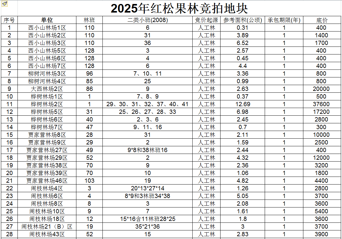 吉林省恩惠科技有限公司受委托方吉林森工臨江林業有限公司委托,對委托方125個標的的紅松果實采集權進行公開拍賣。為確保本次競拍公開、公平、公正進行,現將相關事宜通知如下: